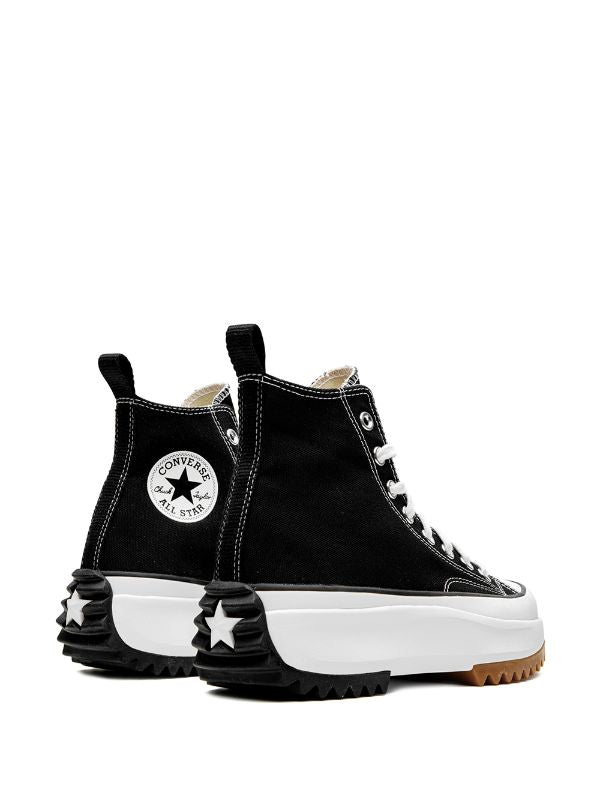Supplied by a premier sneaker marketplace dealing with unworn, already sold out, in demand rarities. Each product is rigorously inspected by experienced experts guaranteeing authenticity. Take a hike! But of course, only if it means in these black and white canvas Run Star Hike sneakers from Converse. Just don't get lost. Featuring a round toe, a platform sole, a lace fastening and a pull tab at the rear.