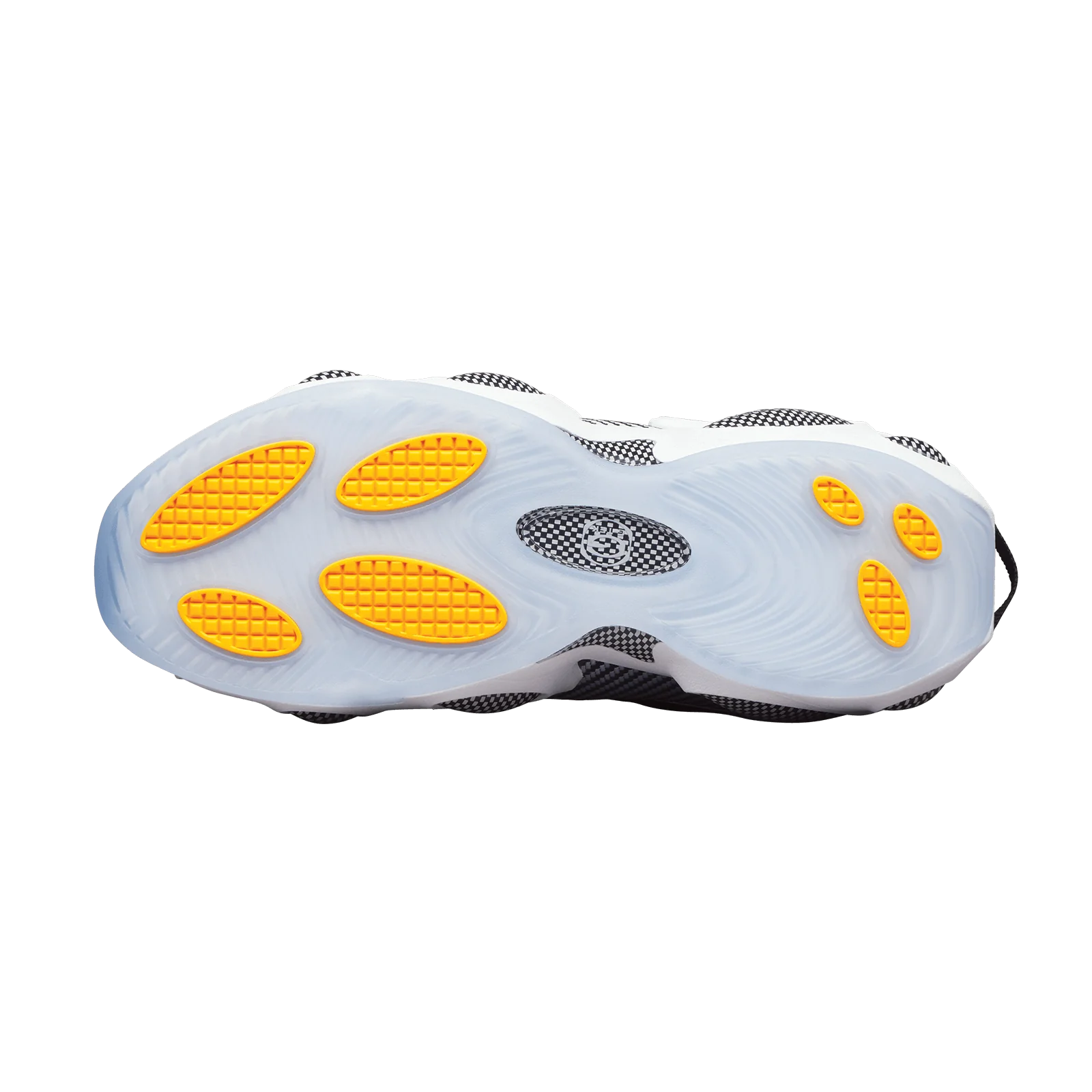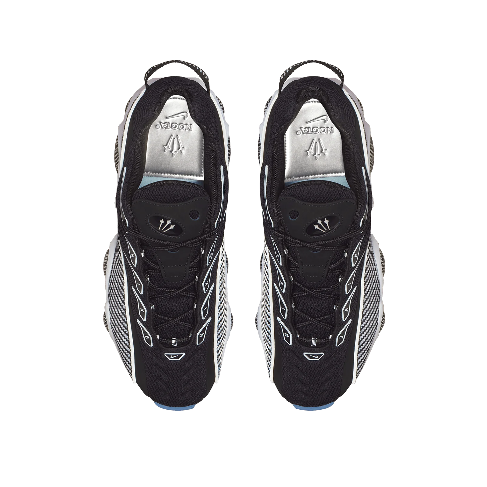 Black & white colorway. Breathable textile upper with reflective piping. swoosh on lateral side, tpu nike logo details on upper. Custom nocta logo on tongue and tpu. 4 lateral and medial tpu pods. translucent g-tek iced rubber outsole. Zoom air bag in the forefoot. Molded and reflective foxing piece.